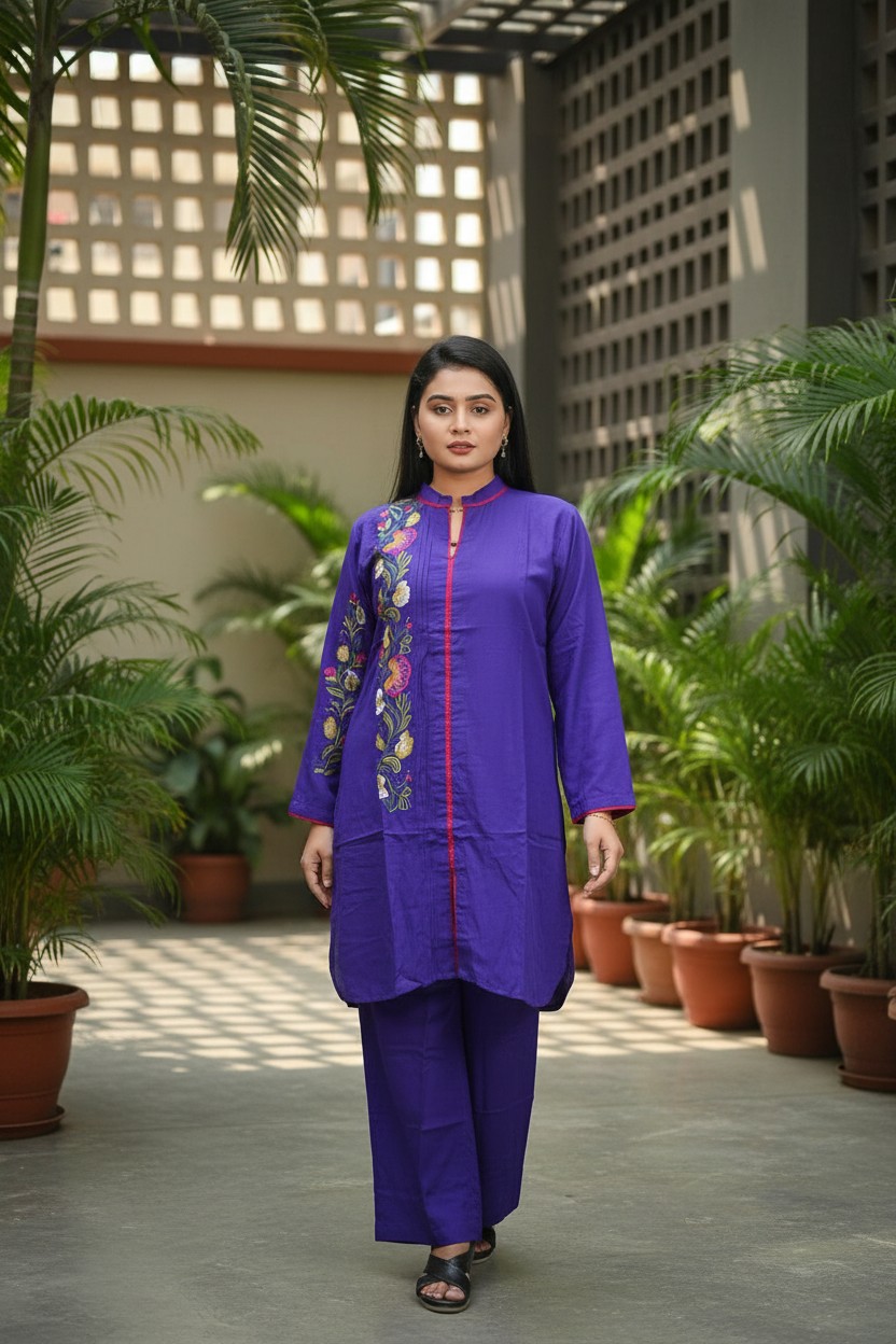 Coffee Gold Floral Embroidery Cotton Three-Piece